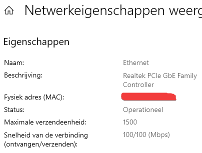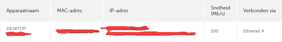 Ik heb mijn desktop verbonden met een Cat5e kabel, de optie “snelheid & duplex” heb ik op “1.0 Gbps Full Duplex” gezet en ik heb een andere poort geprobeerd op de Connectbox. De maximale verzendeenheid staat op 1500. Maar geen van alle acties heeft geholpen.