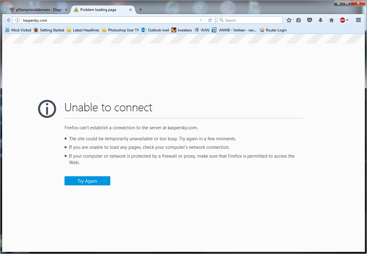 Dit werkt heel goed, mits je daarna meteen de site benaderd. Als je het een paar dagen later weer probeert, kan het maar zo zijn dat je weer geblokkeerd bent. PfSense brengt namelijk ook zelf een volgorde aan, gebaseerd op een keuze die de gebruiker kan maken.