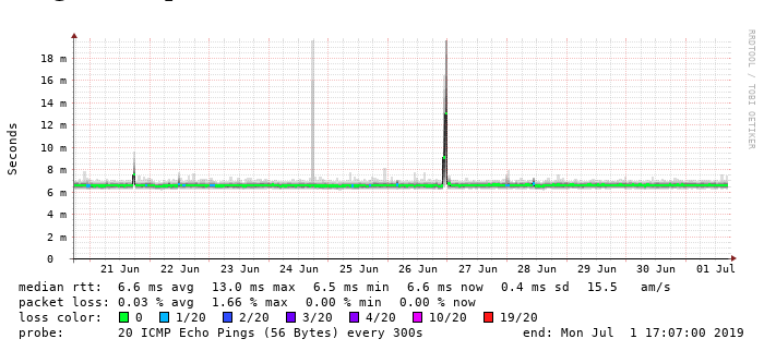 xs4all VDSL in mijn buurt, strak 6.5ms (<2ms jitter).