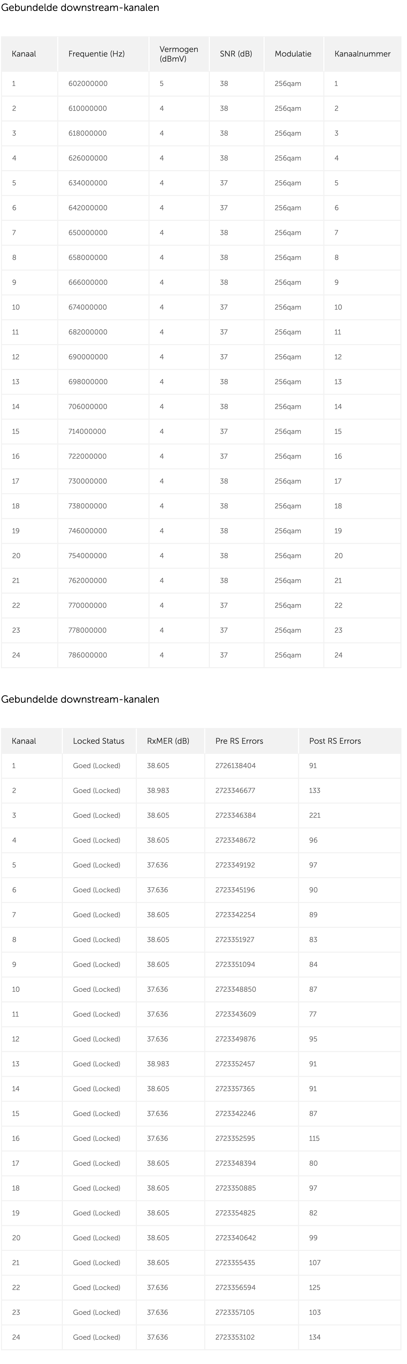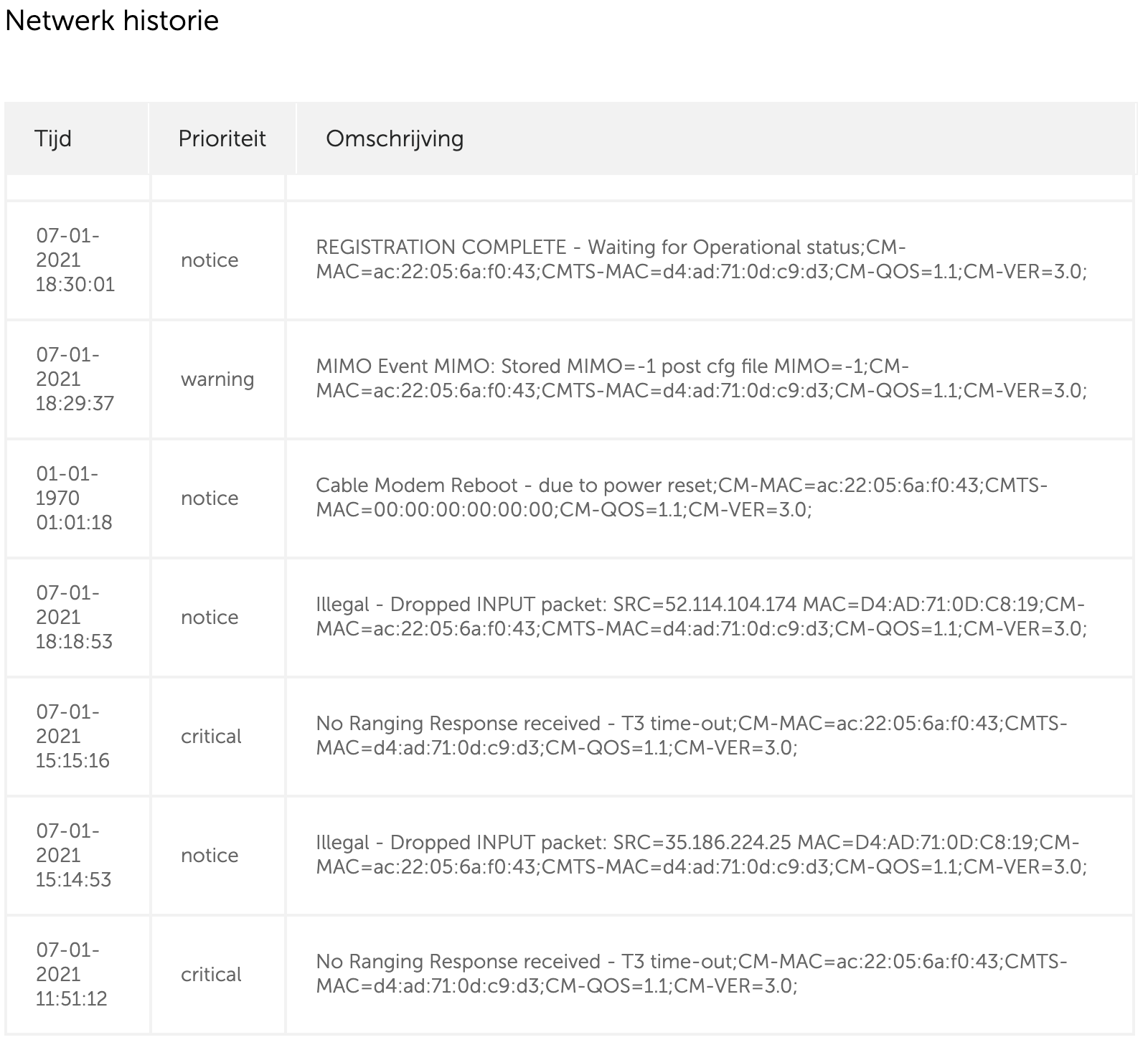 Wat betreft de temperatuur van het modem: Het modem staat vrij op een plankje in de meterkast. Het is nu in de winter zeker heel koud in de meterkast met continue luchtstroom vanuit de kruipruimte. Afgelopen week heb ik ook geen melding meer gezien over een te hoge temperatuur van het modem, maar toch verbaasd mij dat wel. Er komt ook echt wel veel warmte van het modem af.
