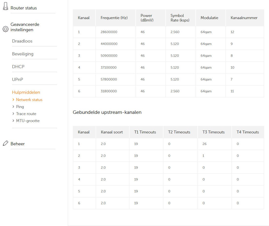 Kunt u de up en downstream gegevens van uw modem (connectbox) laten zien? Ziet u verschil daar voor en na 22.00 uur?