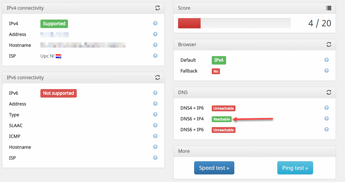 Je gehele huidige verbinding is native IPV6 en géén IPV4.