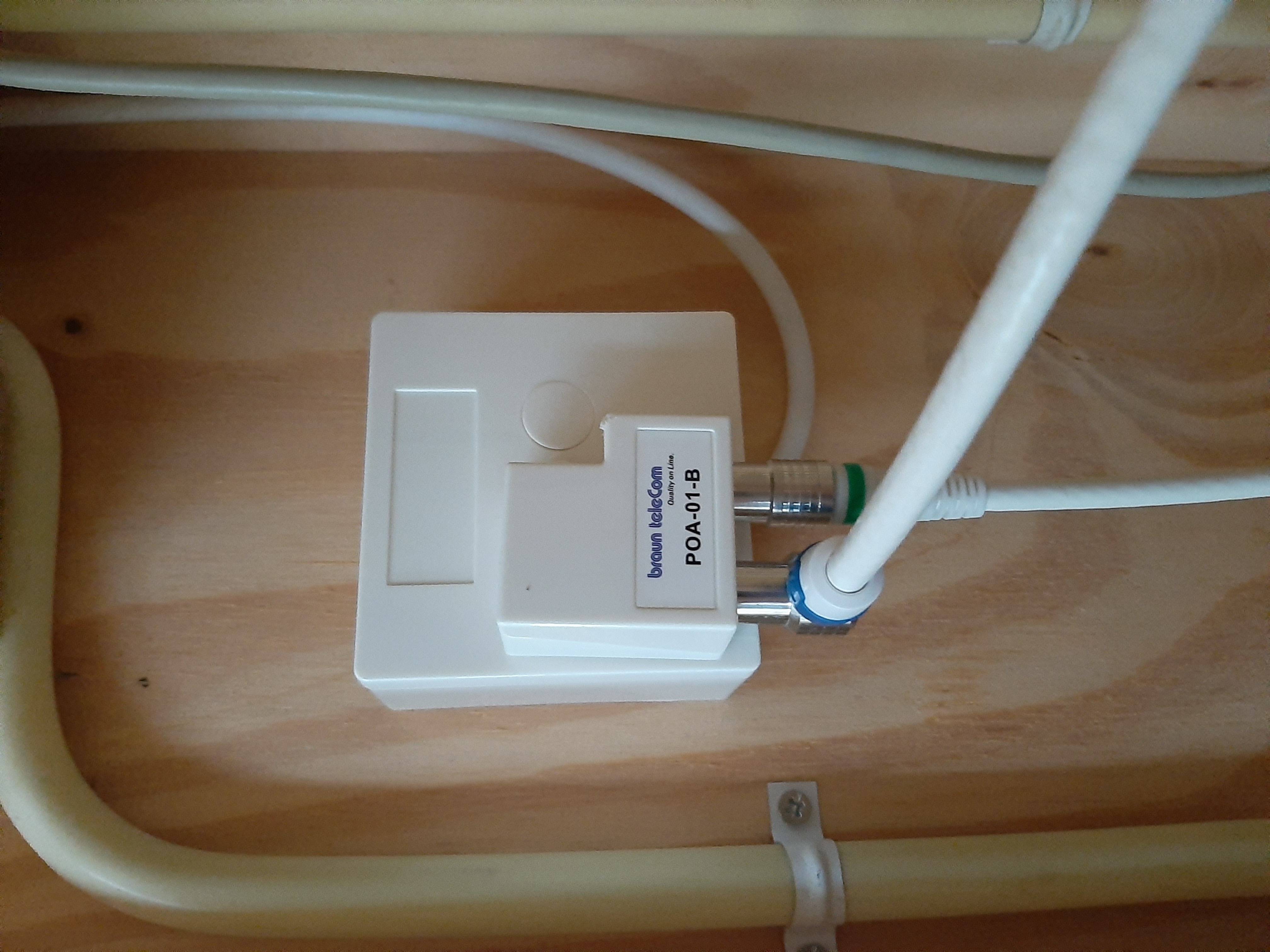 You are losing probably 3.6 dB in the splitter screwed to the plywood in the cupboard at the building entry and another 1dB in the AOP in your appartment and some 3 dB in the POA-01.