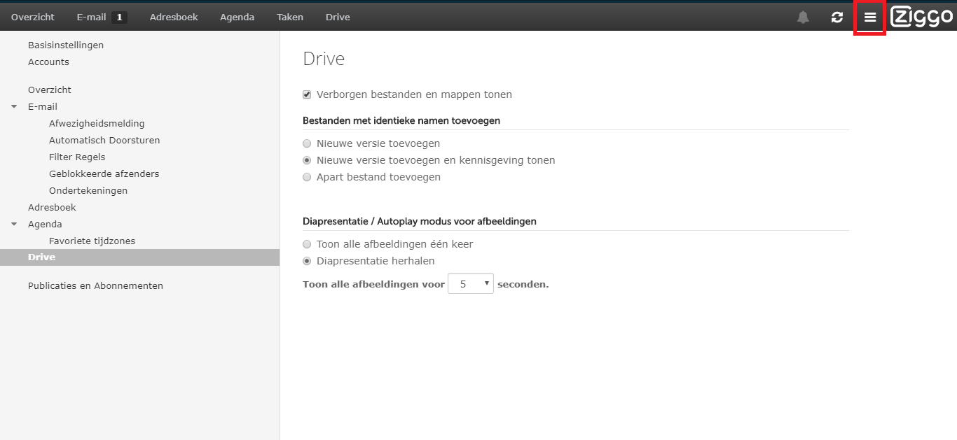 Nadat de mappen correct zijn aangemaakt via web portaal, kan je eventueel aangeven welke ook op elke cliënt zichtbaar dienen te worden of een map op het hoogste niveau aan te maken via "instellingen->email->wijzig imap abonnementen".