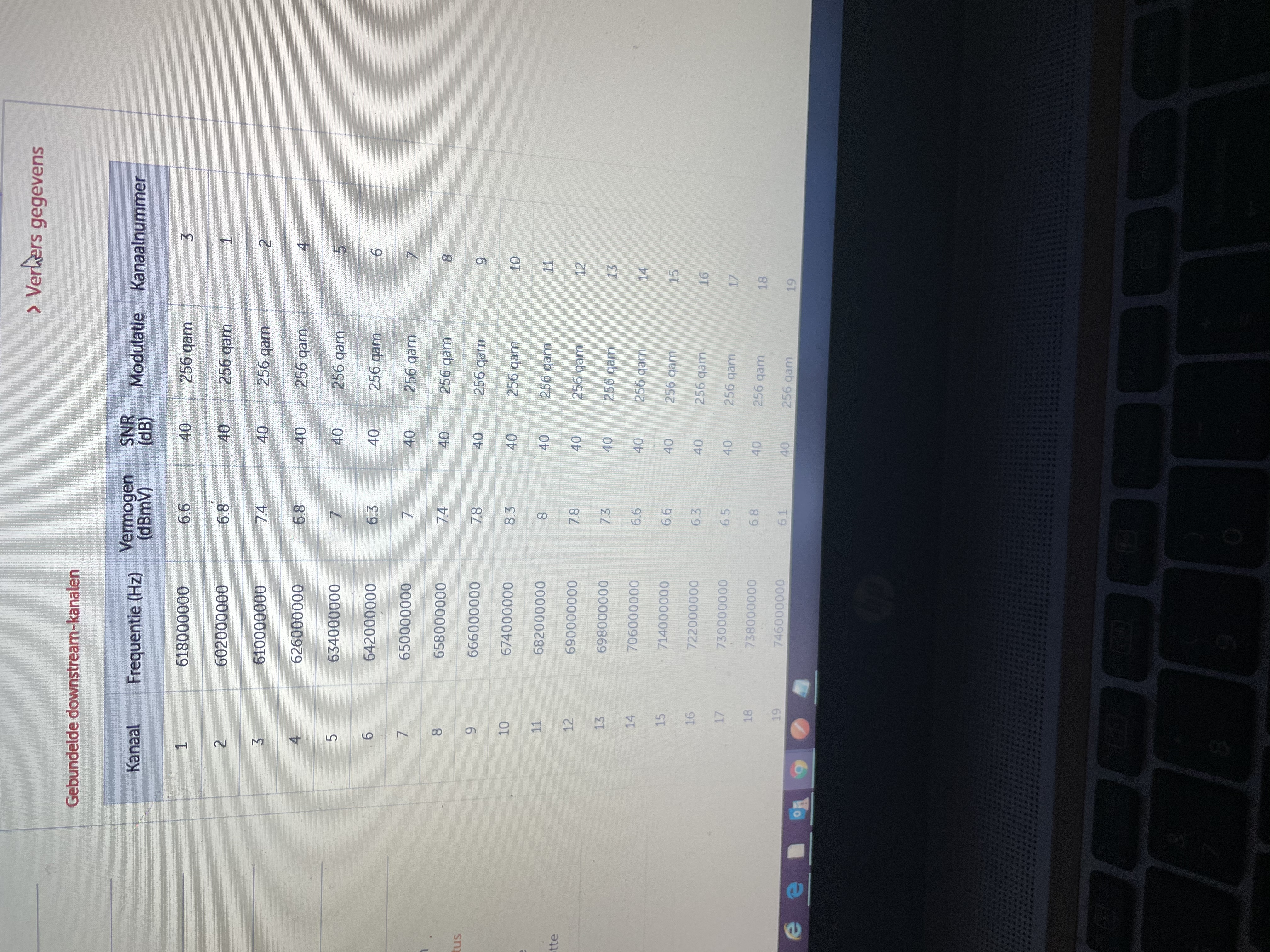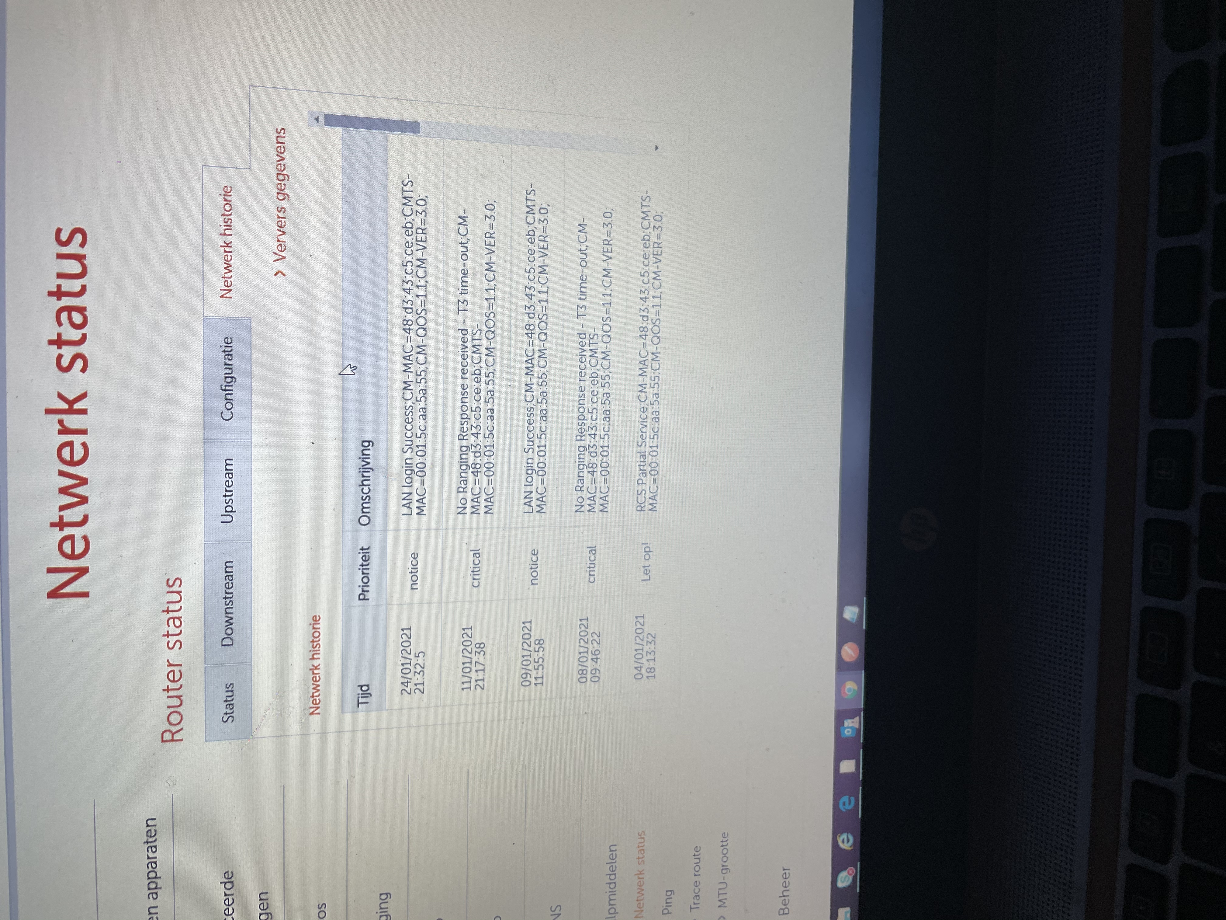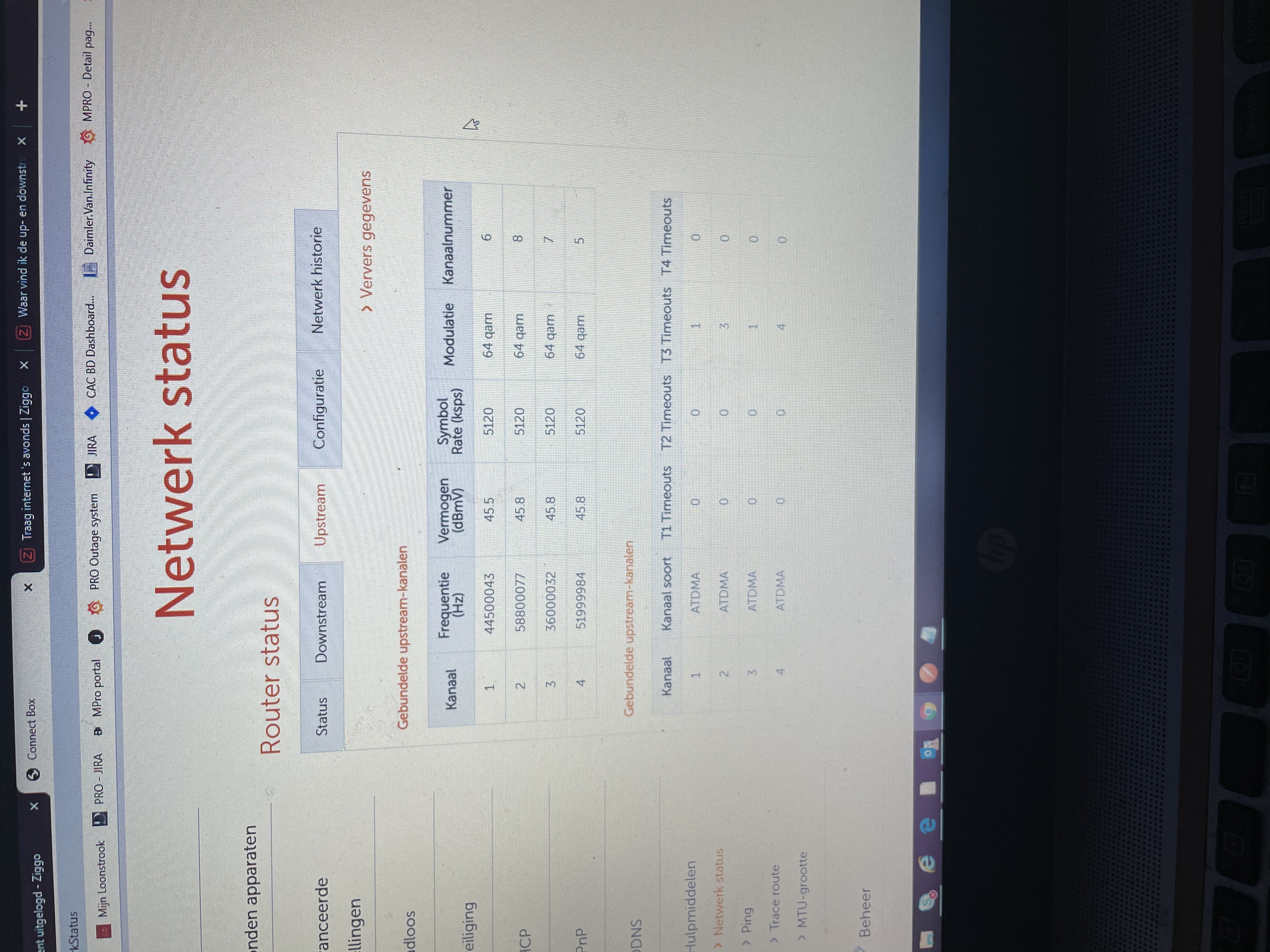 Zou je de volledige twee tabellen op het tabblad Downstream en de volledige tabel op het tabblad Netwerk historie willen plaatsen? Als screenshot/kopie is handiger dan foto’s van scherm.