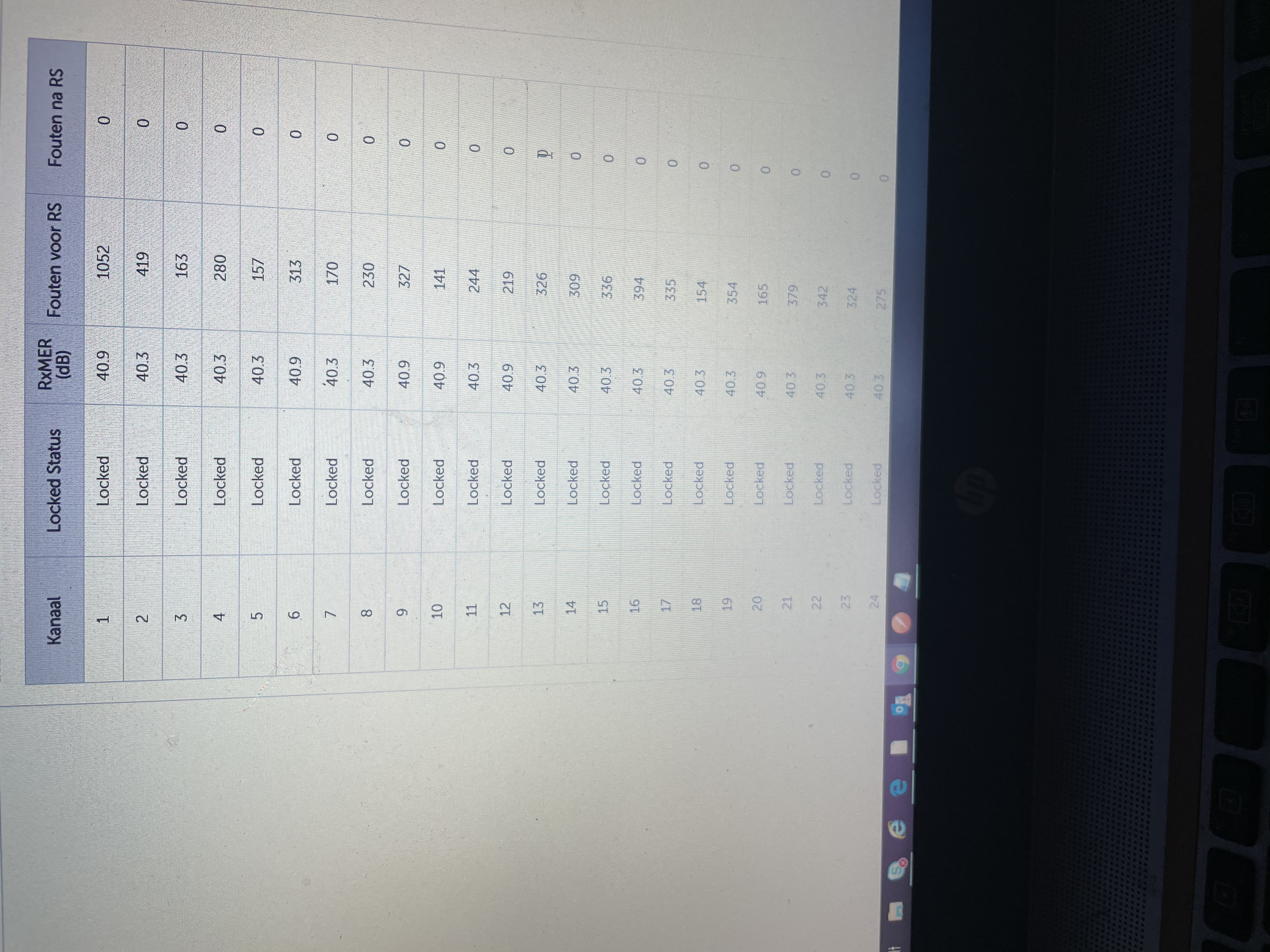 Downstream ziet er uitstekend uit. Ruim voldoende signaal, geen ruisproblemen. Upstream is ook in orde.