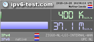 Je modem heeft een IPv6 (DS-Lite) profiel, waarmee je een eigen IPv6 adres krijgt en het IPv4 adres in feite deelt met een x aantal anderen. Onze servers die het IPv4 verkeer naar jou terug moeten leiden zorgen wellicht voor deze vertraging in je verbinding.