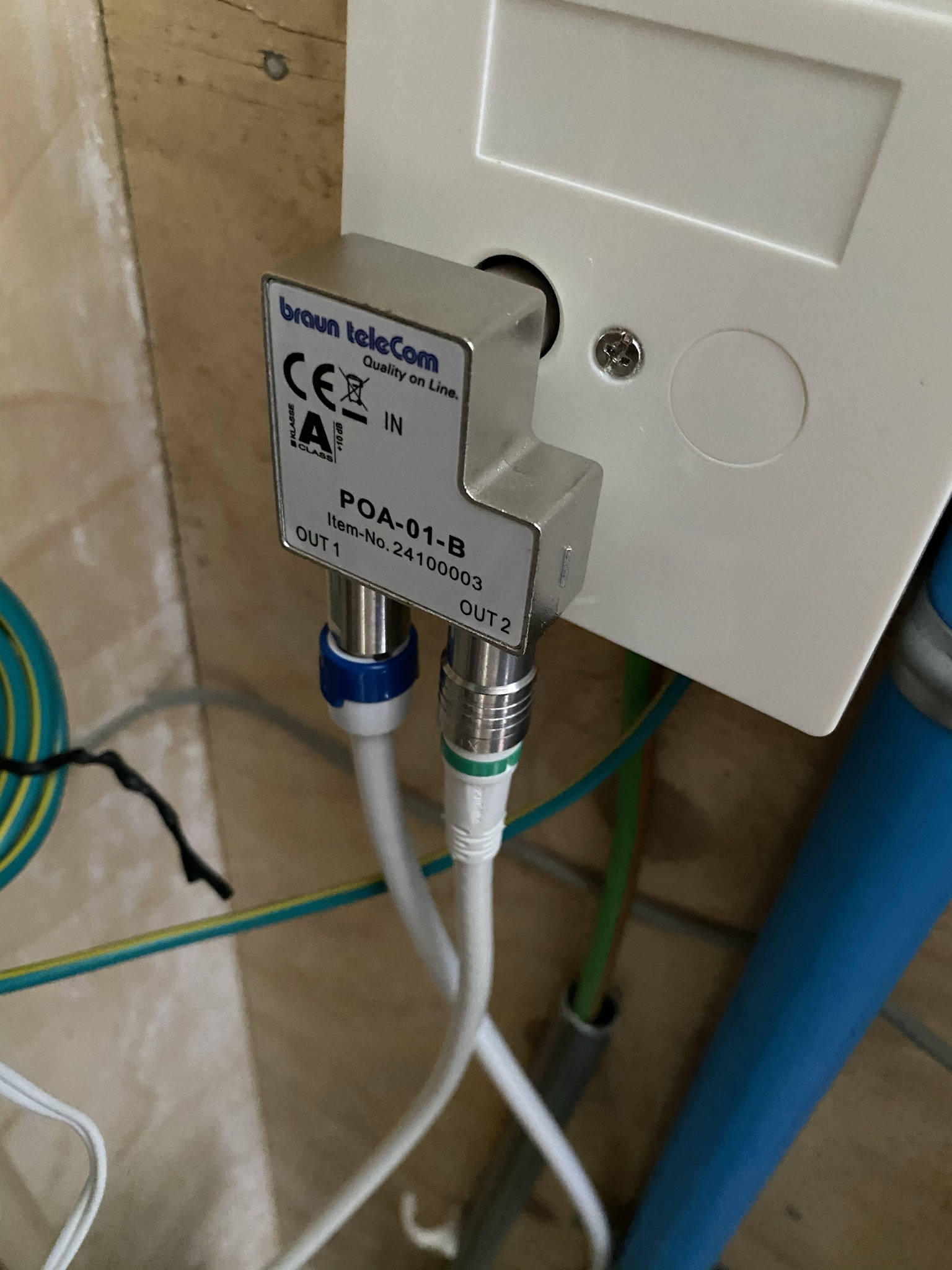Vraag daarbij ook een modem kabel die op de POA-01-B splitter past?