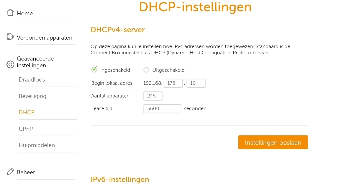 Geavanceerde instellingen DHCP. Zie je daar hetzelfde als deze afbeelding?