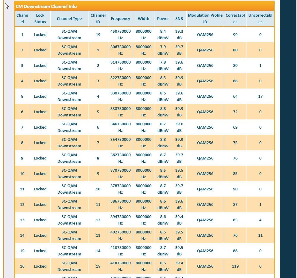 Het enige wat ik nog wel eens getest wil zou willen zien is of de signaalwaarden die door het modem aangegeven worden wel exact hetzelfde zijn als dat je het zou meten met een gekalibreerde signaalmeter , een waar je de netten mee sweept en tot een tiende dbmv nauwkeurig is.