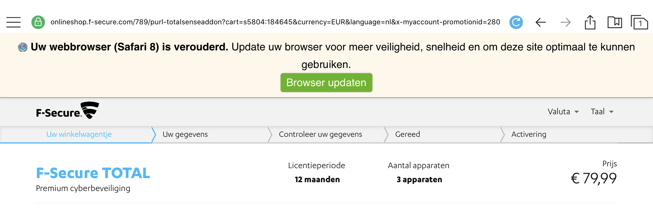 Heb je de exacte urls hiervan? (bijv: https://f-secure.com/nl/home/products/safe#buy of https://onlineshop.f-secure.com/789/purl-SAFETOTAL?cart=s5313:122977¤cy=EUR&language=nl&x-affi...)