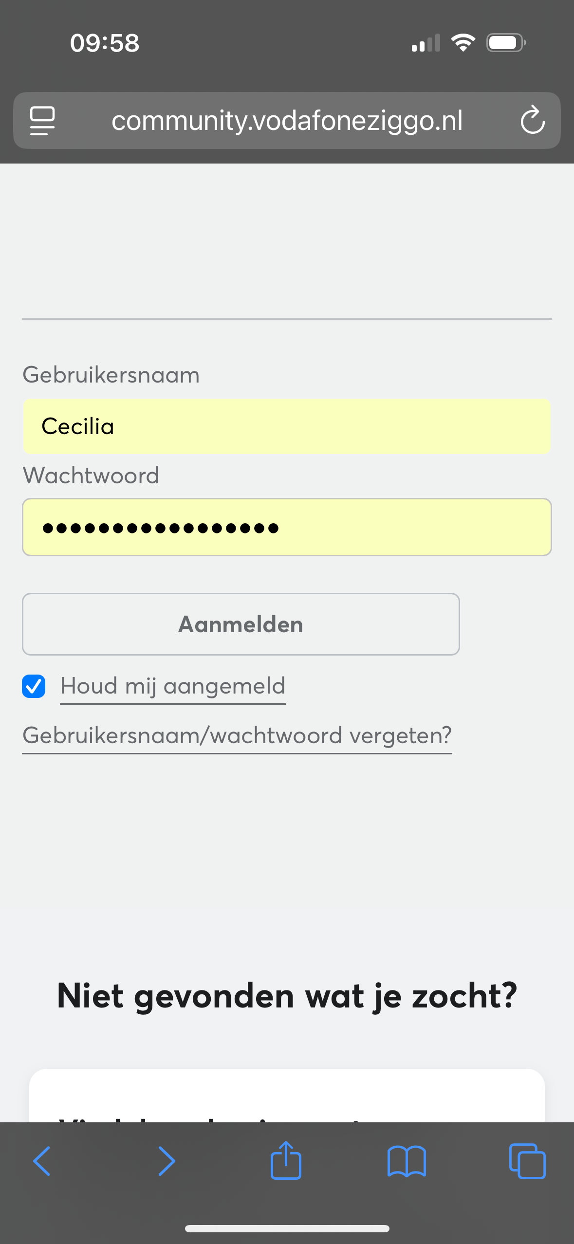 Maar goed, het inloggen gaat wel en ik kan ook het vinkje aanzetten, maar ik moet nu elke keer inloggen en hij wil het niet onthouden dat ik ingelogd wil blijven 😞 - Wat doet die bij jou dan? als je inlogt met vinkje aan, dan de pagina afsluit met X en safari helemaal afsluiten. Als je dan weer terug gaat naar safari, blijf jij er dan wel in of moet je ook opnieuw inloggen?