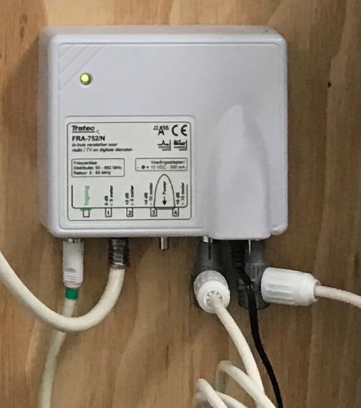 Het AOP is gedateerd, de versterker lijkt goed en het verdere signaal is ook goed, omdat het signaal verder in huis wel goed werkt er kan nu niet direct een monteur naar toe in verband met het Corona virus.