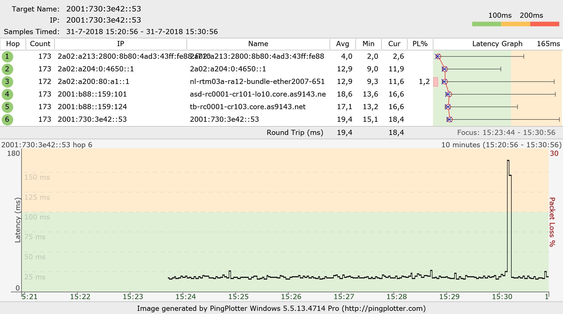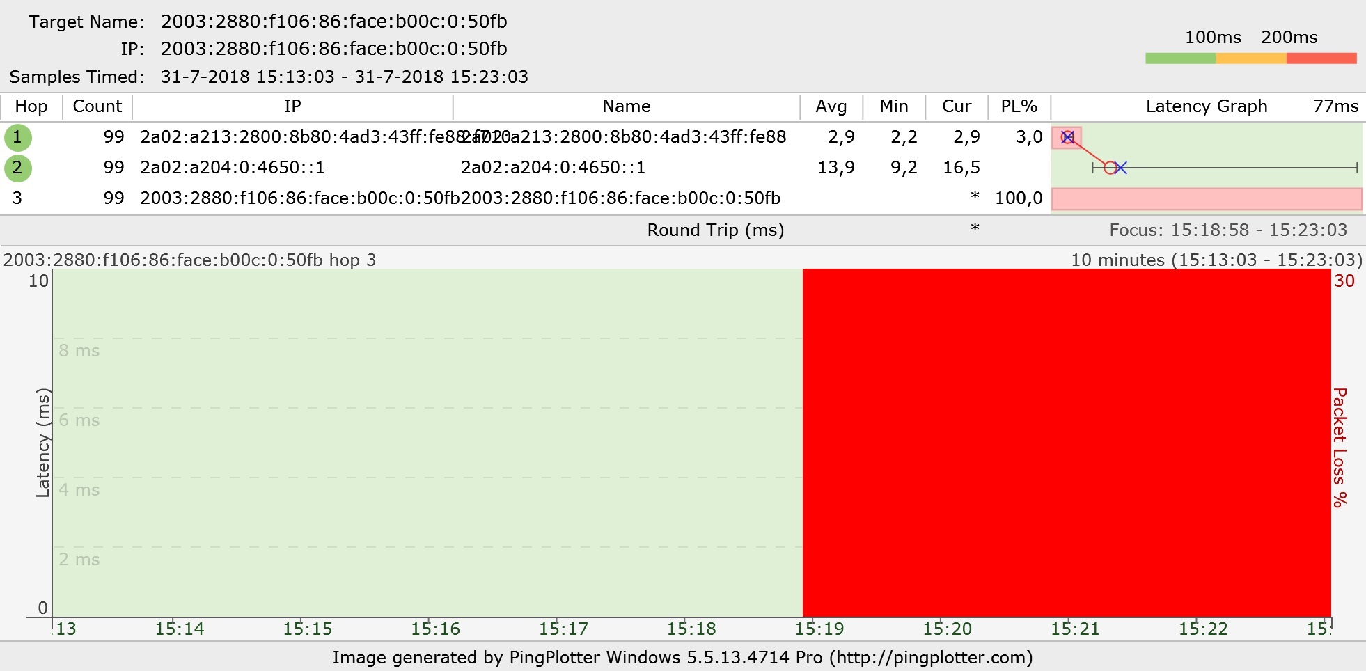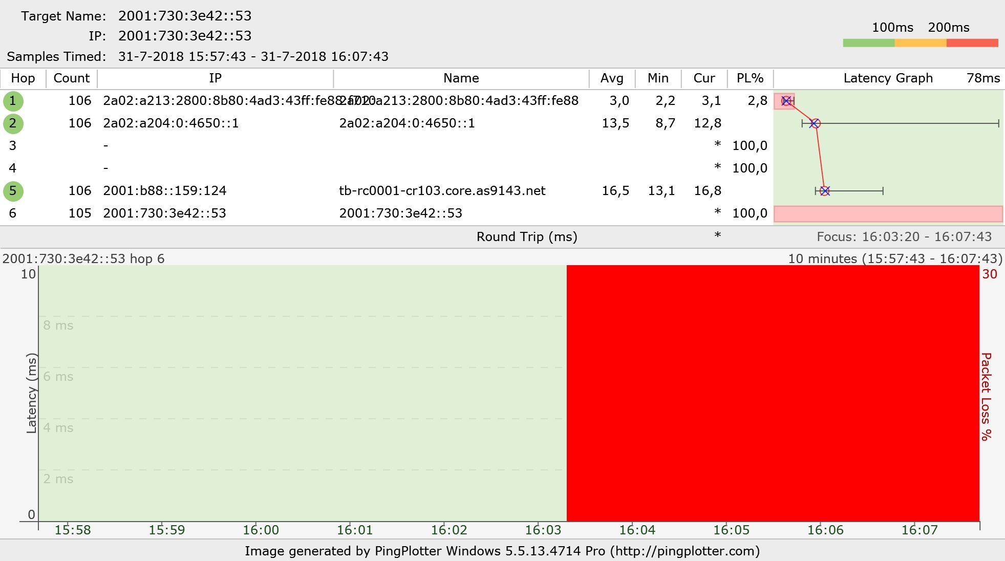 Het blijkt dat dan met grote regelmaat het pingen met de -6 switch misloopt.