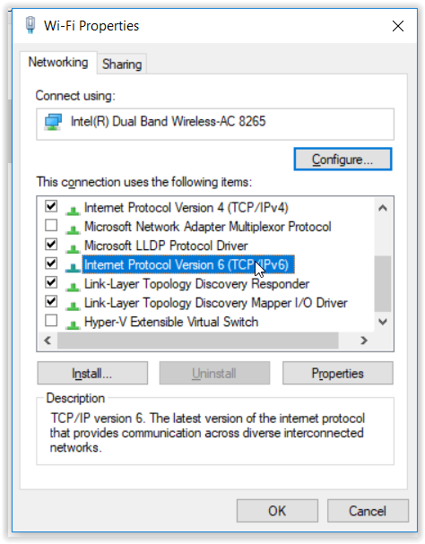 Wat bedoel je met "de eigenschappen van de IPv6 stack in Windows"?