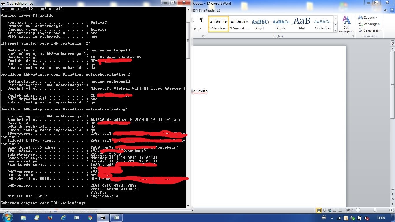 Met ipconfig /all blijkt in alle gevallen dat zowel de IPv6 als de IPv4 adressen hetzelfde zijn bij alle pingpogingen (dat dan met uitzondering van het Tijdelijk IPv6-adres dat wijzigt na opnieuw opstarten).