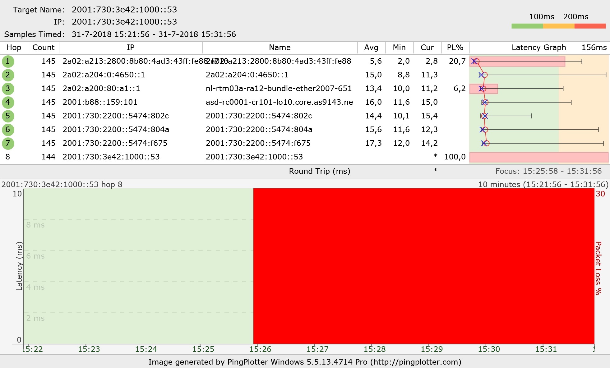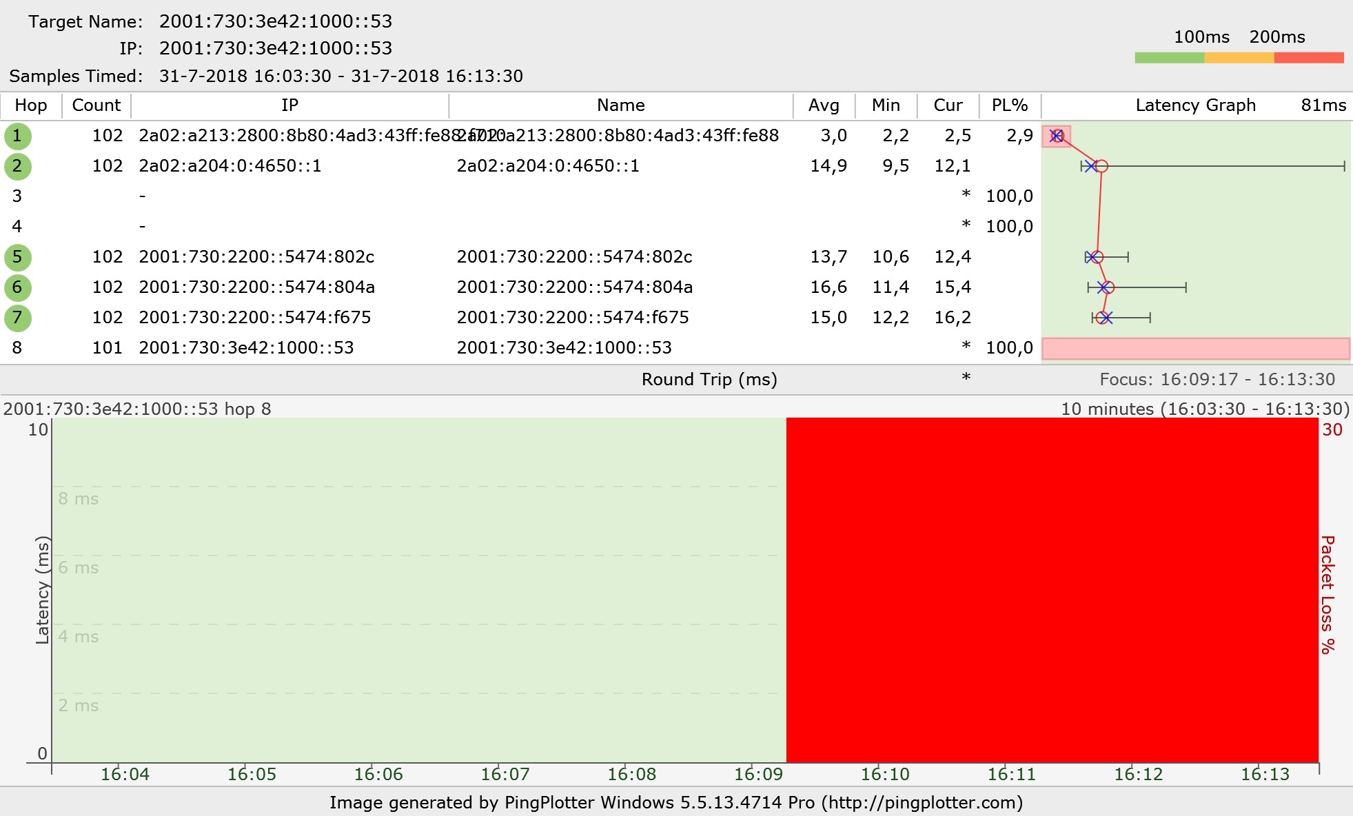 Onafhankelijk hoe het gaat met pingpogingen met -6, als ik ping met -4 gaat het ALTIJD goed.